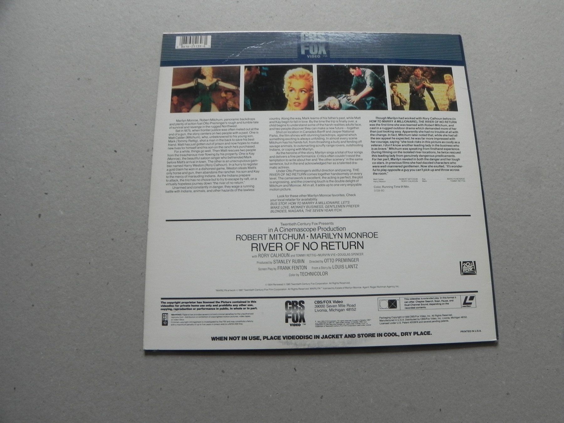 Laserdisc Film River of no Return 1954 / 1988 Marilyn Monroe (Neu und