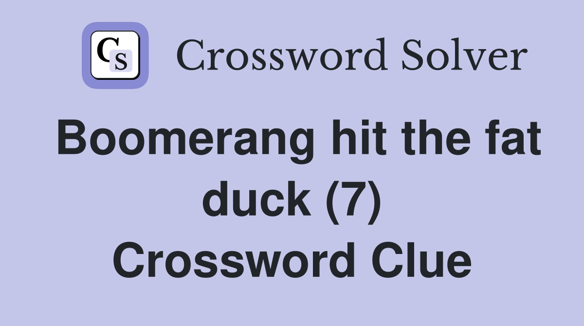 Boomerang hit the fat duck (7) Crossword Clue Answers Crossword Solver