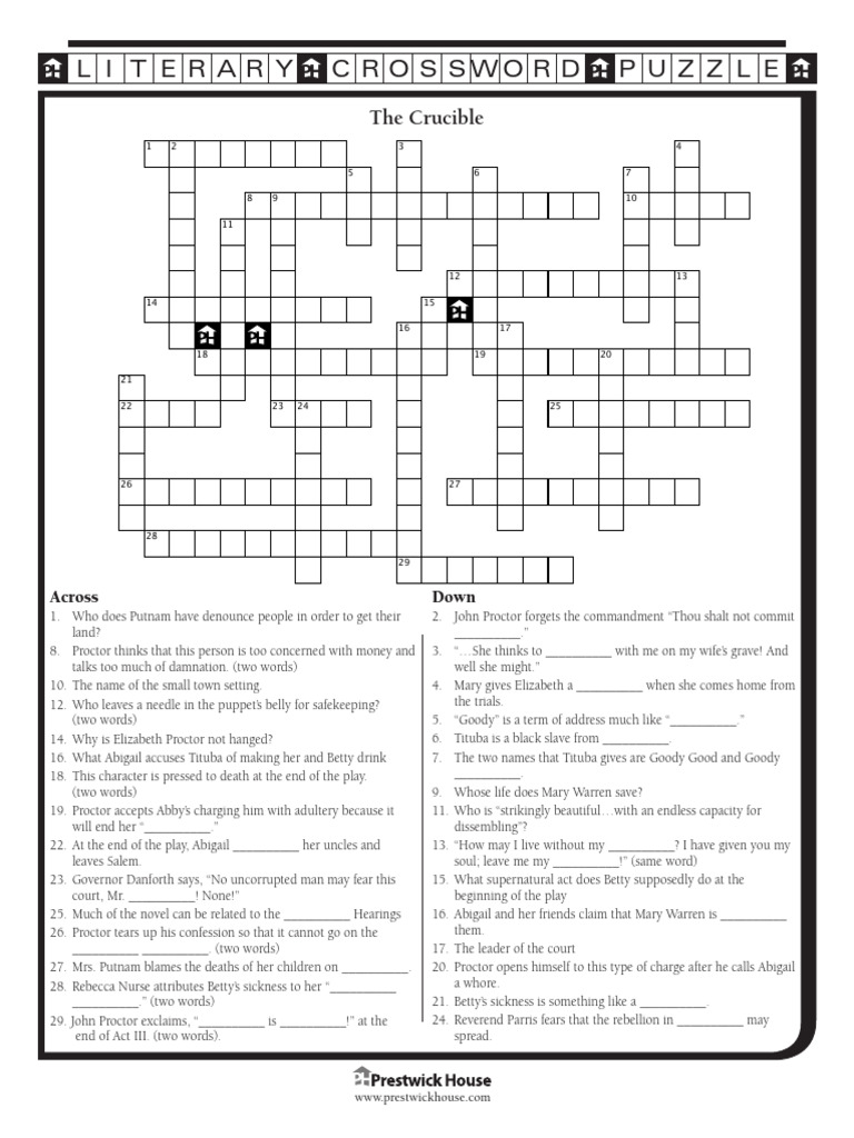The Crucible Crossword PDF Witch Hunting Witch Trials