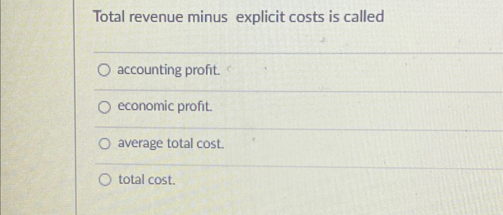 Solved Total revenue minus explicit costs is Chegg com