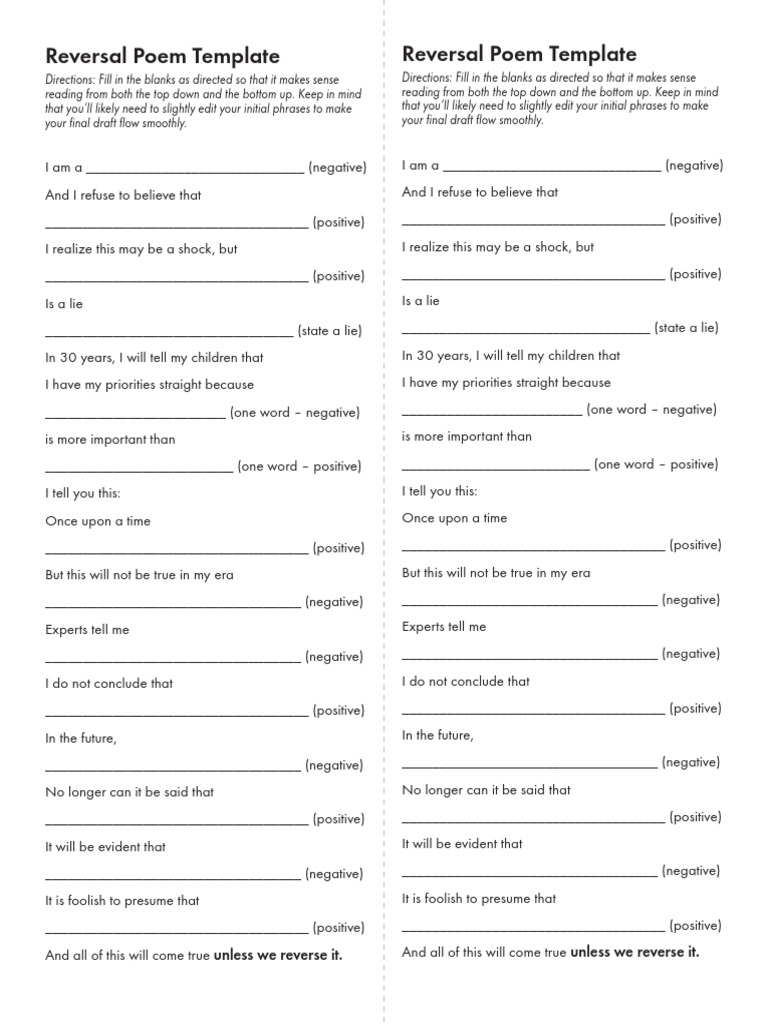 Reversal Poem Template How to Write a Reverse Poem
