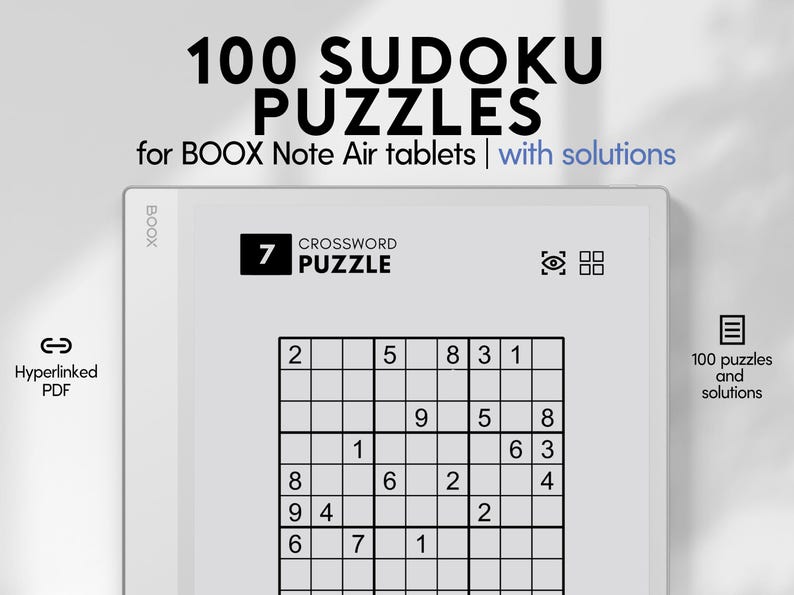 100 Hyperlinked Sudoku Puzzles for BOOX Note Air Logic Games Brain