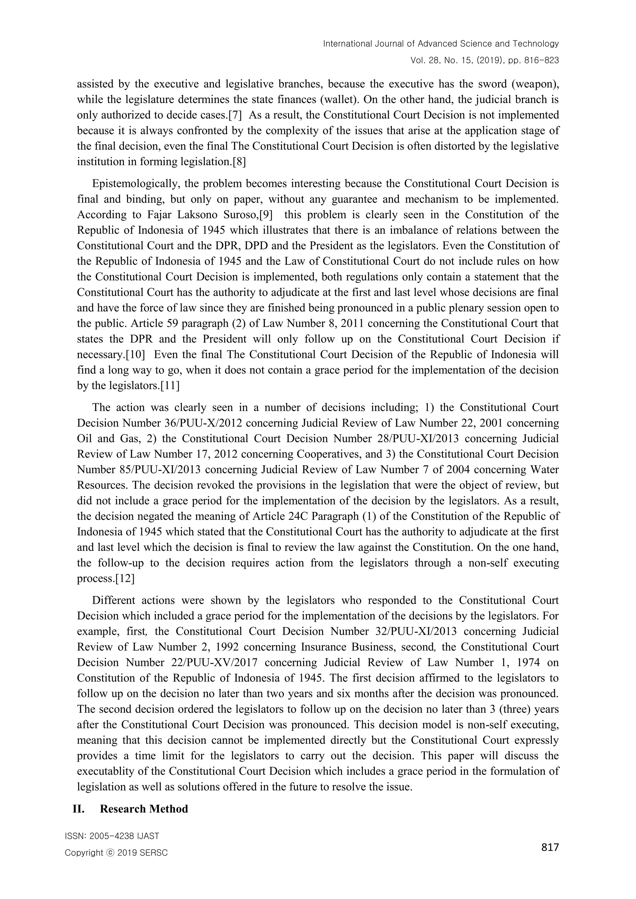 Executability of the constitutional court decision PDF