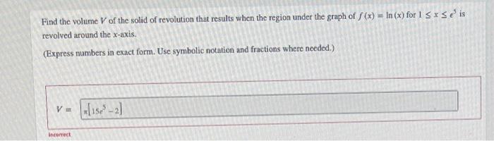 Solved Find the volume V of the solid of revolution that Chegg com