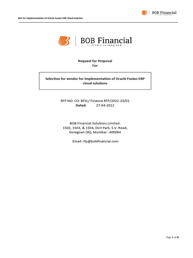 RFP For Implementation of Oracle Fusion ERP Cloud Solution PDF