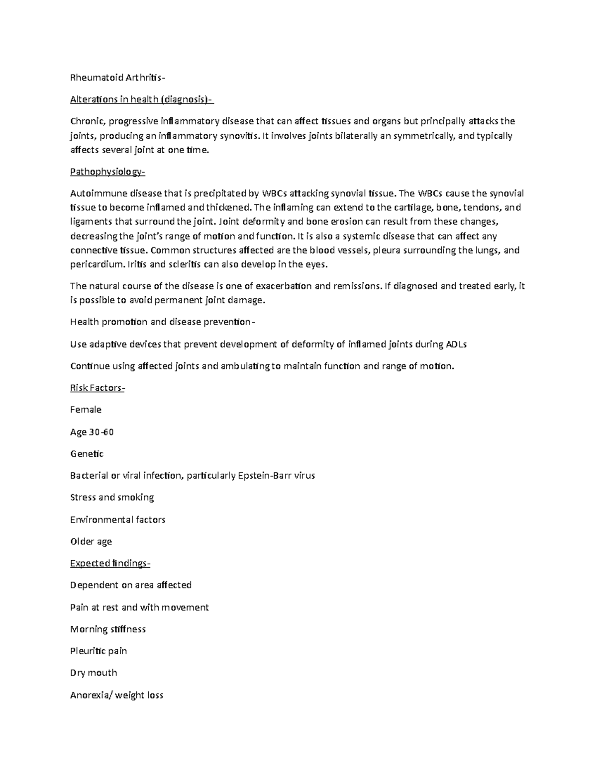 Rheumatoid Arthritis: System Disorder Overview Care Strategies Studocu