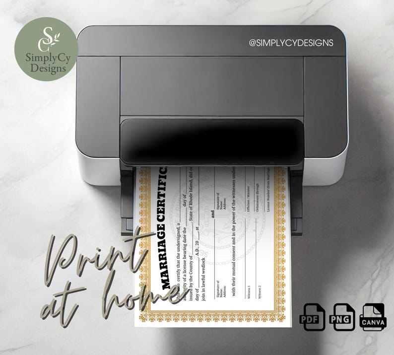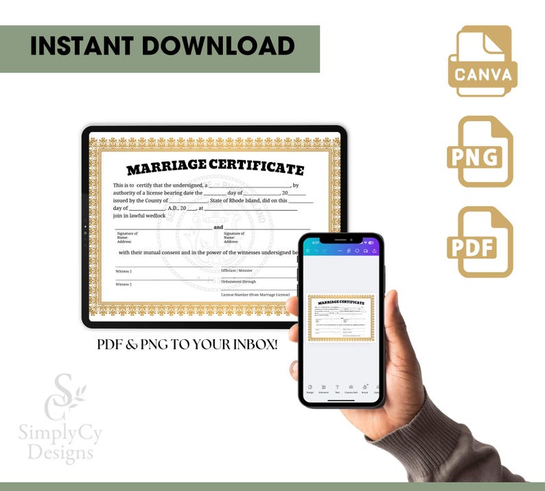 Rhode Island Marriage Certificate Template Printable Wedding Keepsake