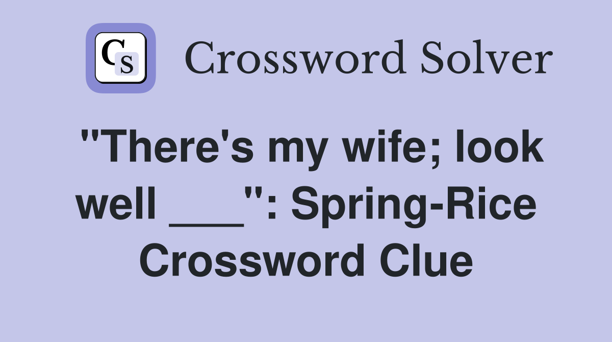 quot There #39 s my wife look well quot : Spring Rice Crossword Clue Answers