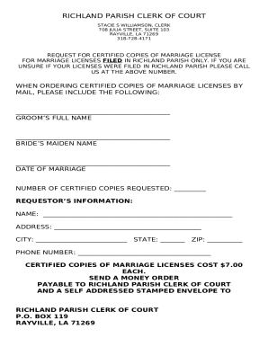 application for marriage license Richland Parish Clerk of Court Doc