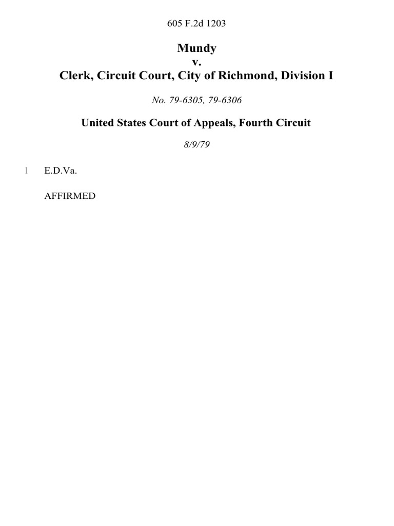 Mundy v Clerk Circuit Court City of Richmond Division I 605 F 2d