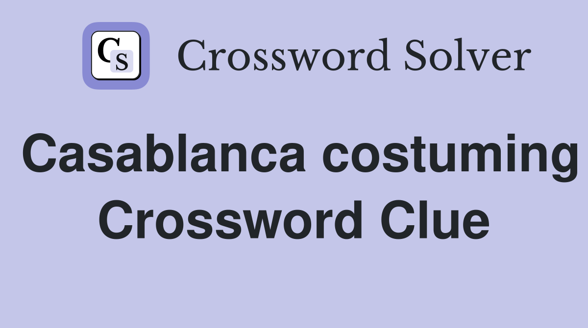Casablanca costuming Crossword Clue Answers Crossword Solver