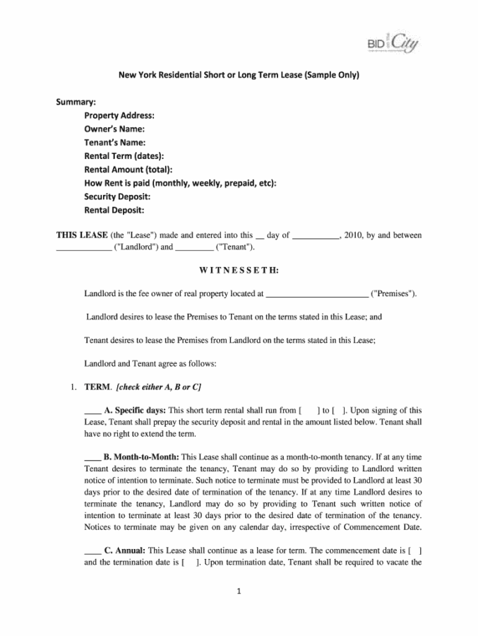 Download Free New York Standard Rental Lease Stabilized with Rider