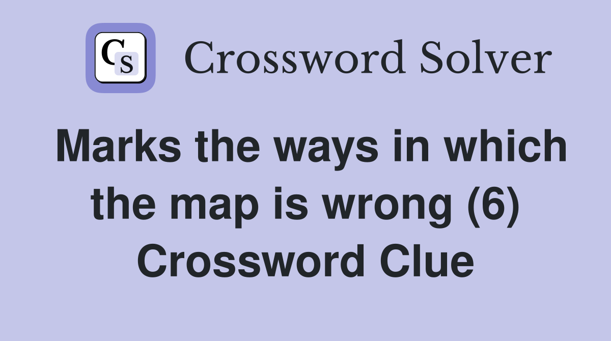 Marks the ways in which the map is wrong (6) Crossword Clue Answers