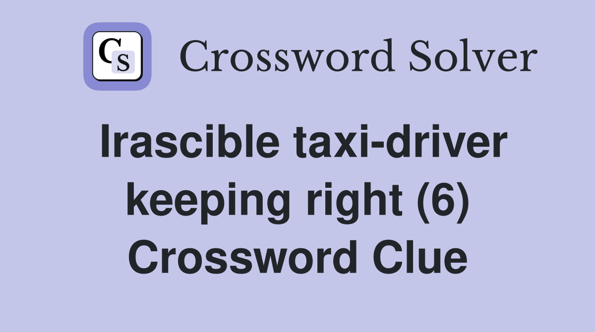 Irascible taxi driver keeping right (6) Crossword Clue Answers