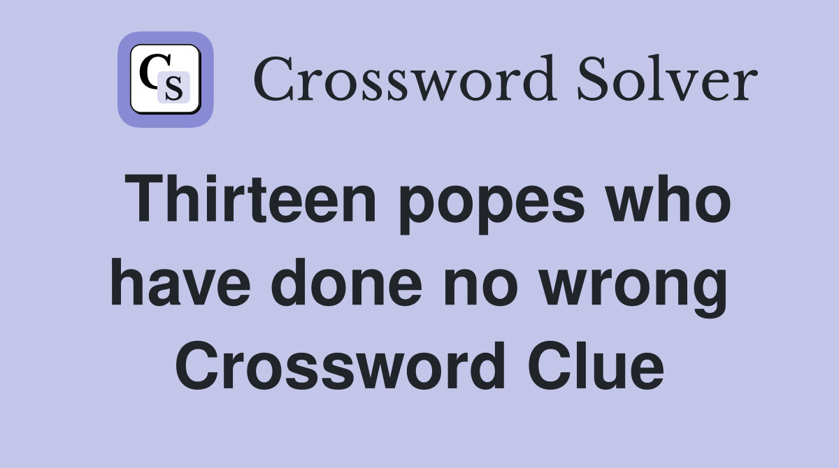 Thirteen popes who have done no wrong Crossword Clue Answers