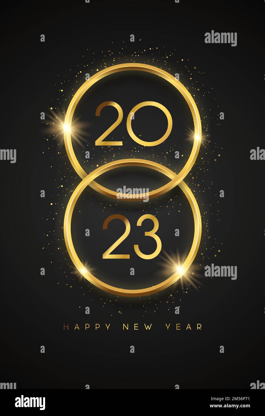 Happy New Year 2023 vertical greeting card illustration Gold 3d ring