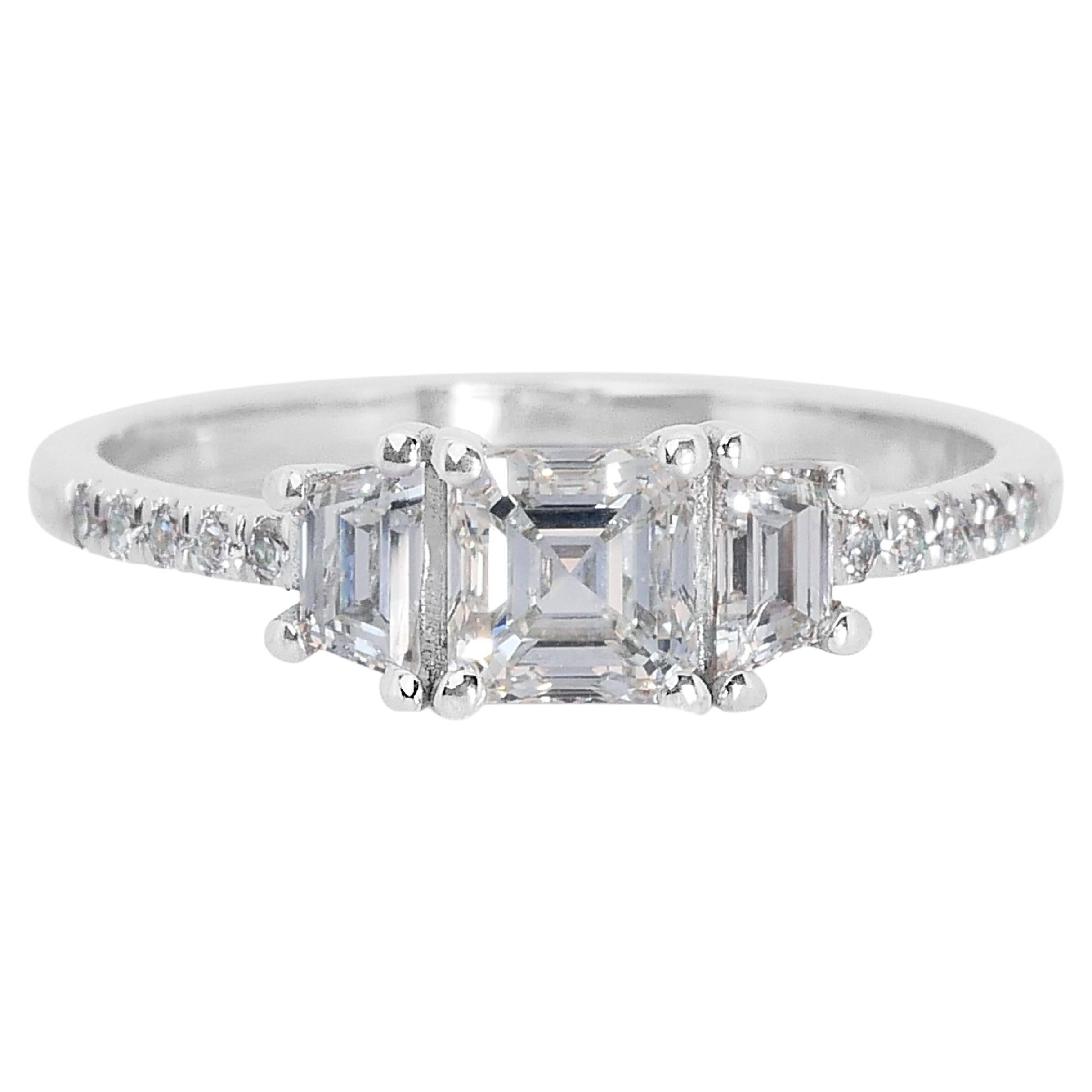 18k White Gold Solitaire Pave Ring with 0 76ct Natural Diamonds IGI