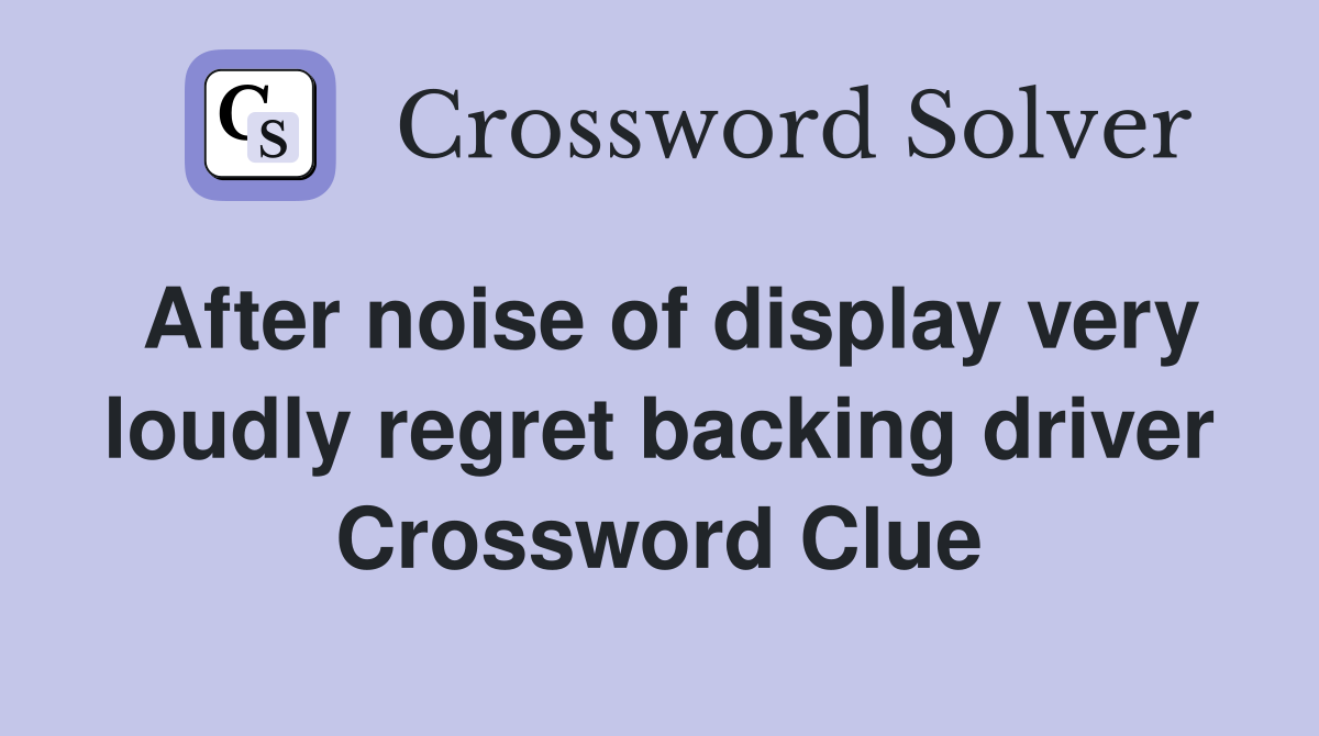 After noise of display very loudly regret backing driver Crossword
