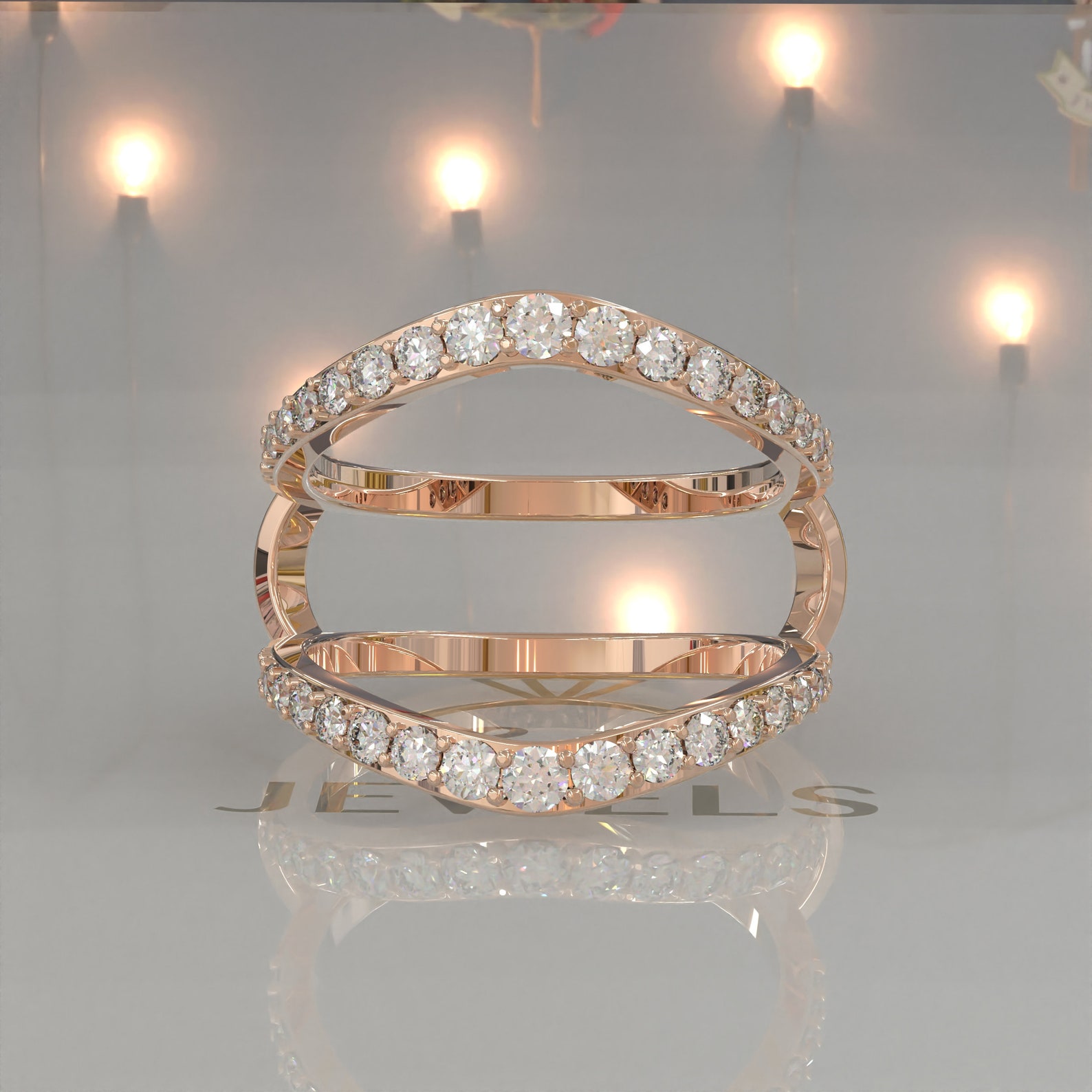 Round Diamond Contour Engagement Ring Guard in 14k Rose Gold Shane Co