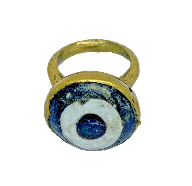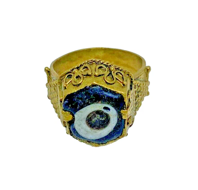 RARE ANCIENT WEARABLE Phoenician Gold Color Ring Bronze With Mosaic