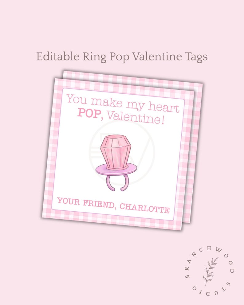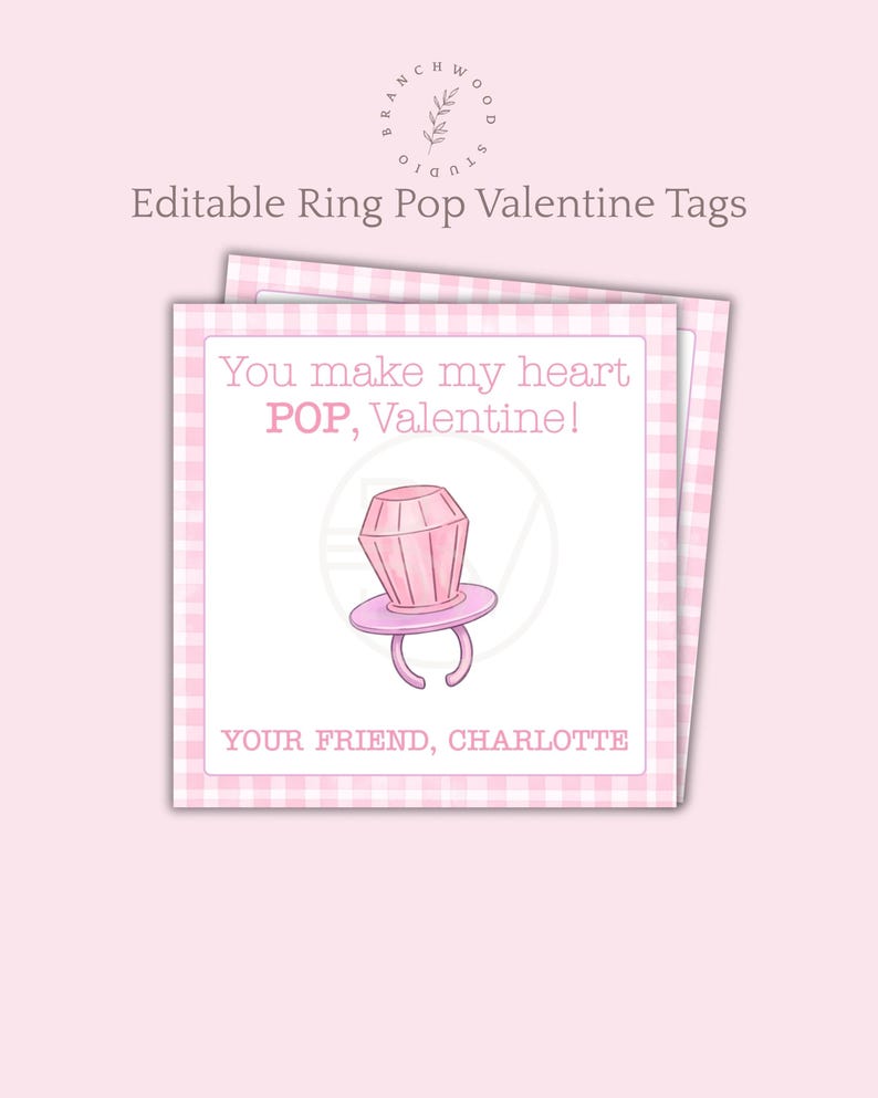 Editable Ring Pop Valentine Tags Printable Class Valentines You