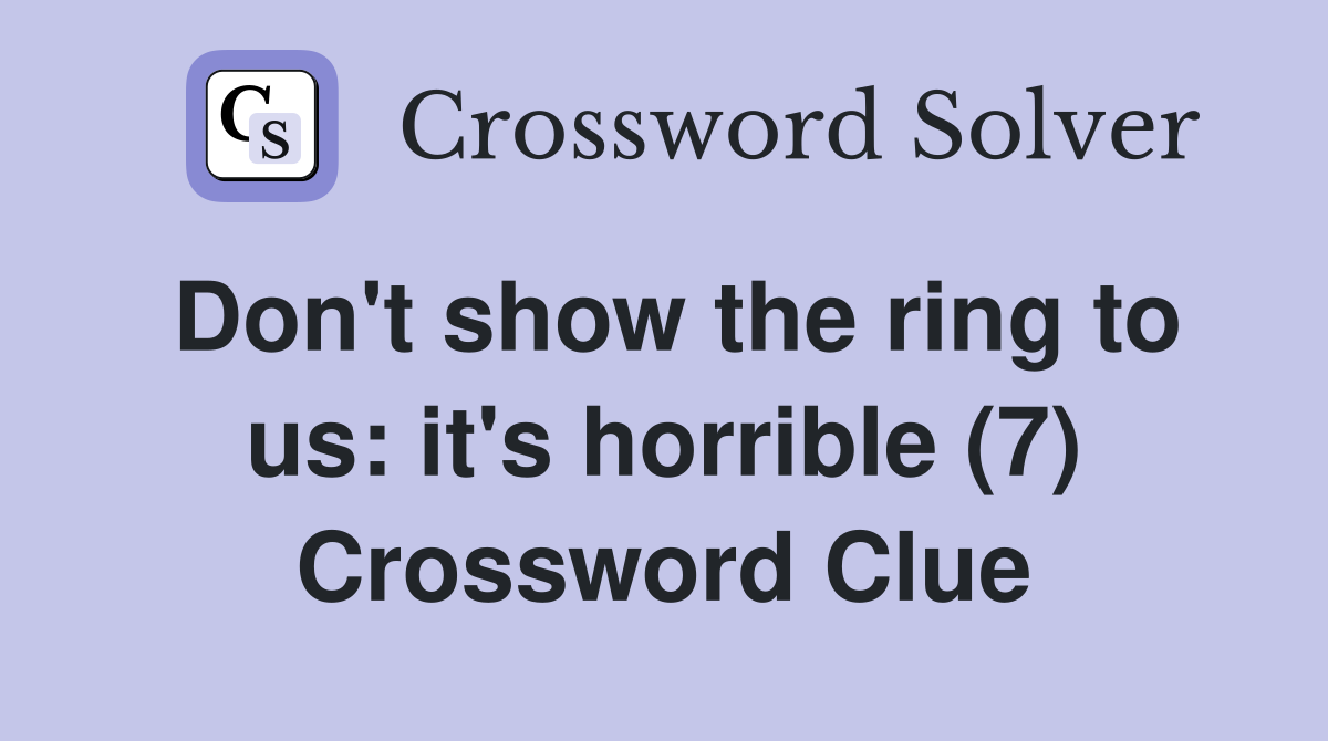 Don #39 t show the ring to us: it #39 s horrible (7) Crossword Clue Answers