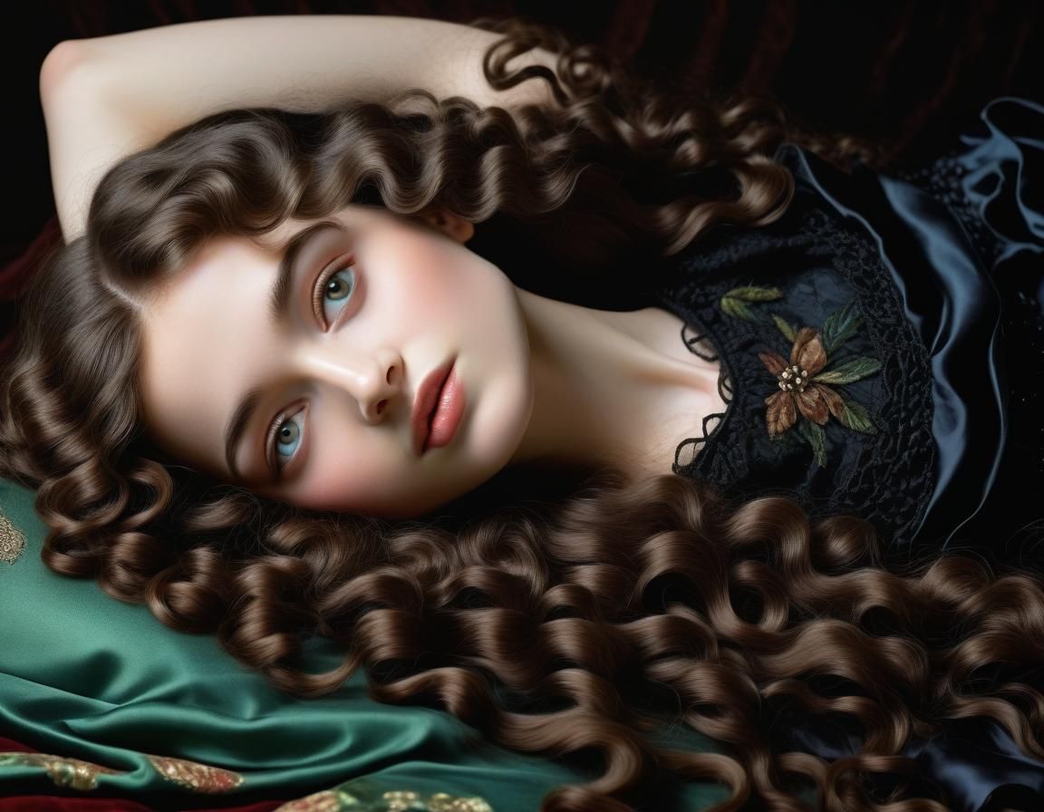 Beautiful princess brunette very long ringlet hair ivory skin light