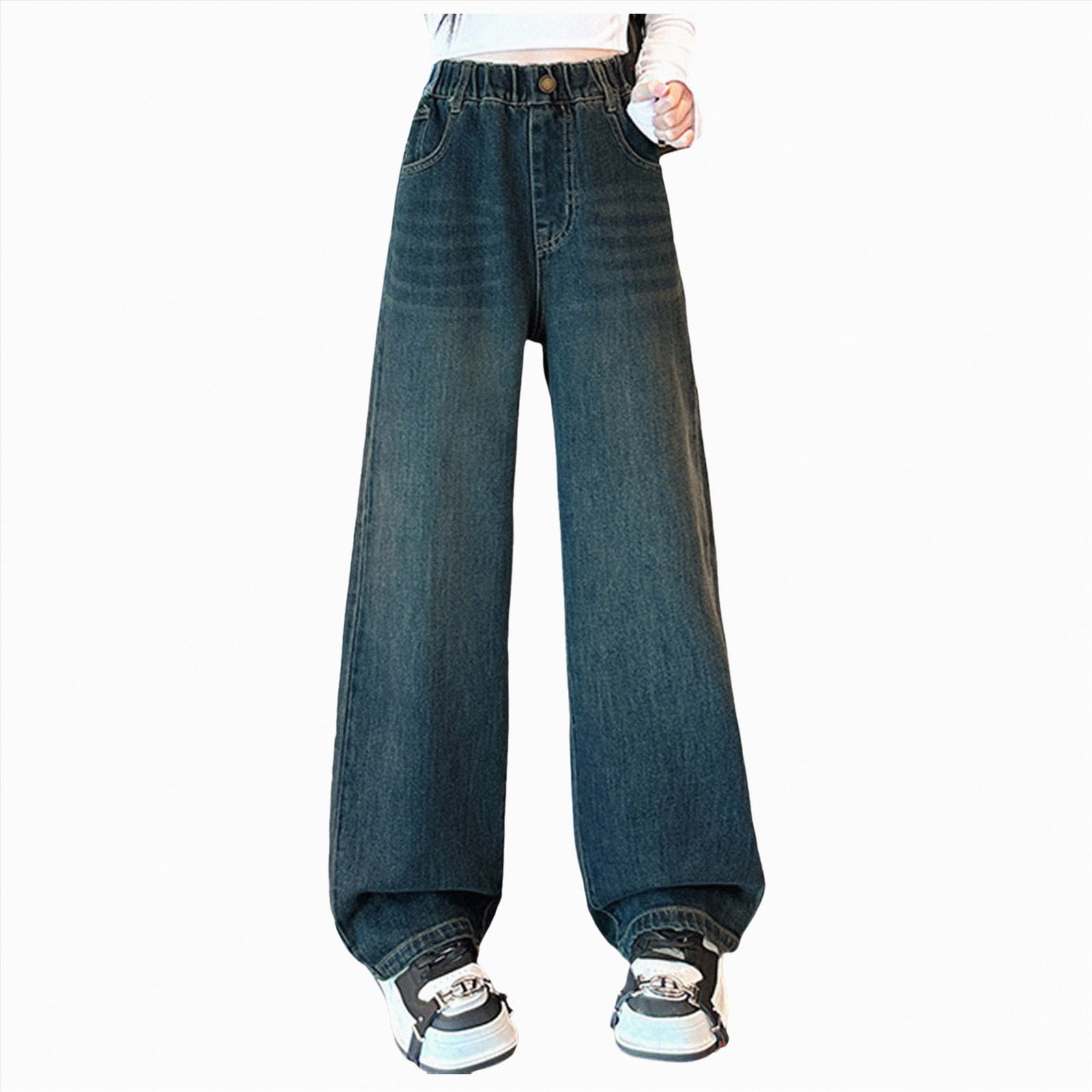 Ccpelsie Jeans for Girls Wide Leg Ripped High Elastic Waisted Denim