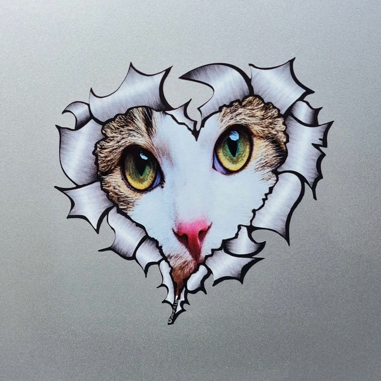 DOPASTICKER Cute White Cat Kitten Heart Ripped Metal Sticker Decal