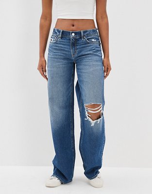 AE リップド ローライズ バギー ワイドレッグジーンズ