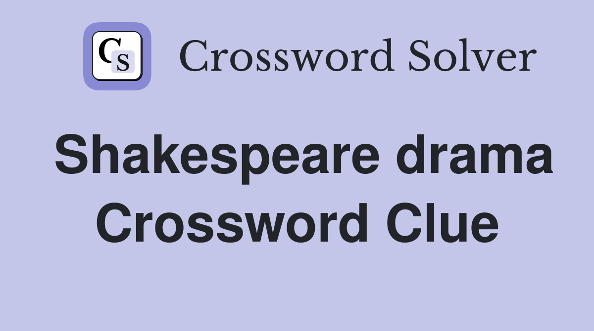 Shakespeare drama Crossword Clue Answers Crossword Solver