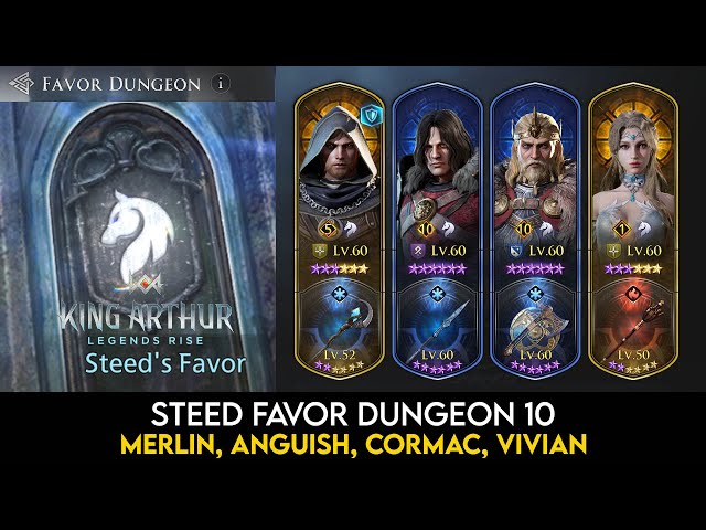 Steed Favor Dungeon 10 vs Merlin Anguish Cormac Vivian King Arthur