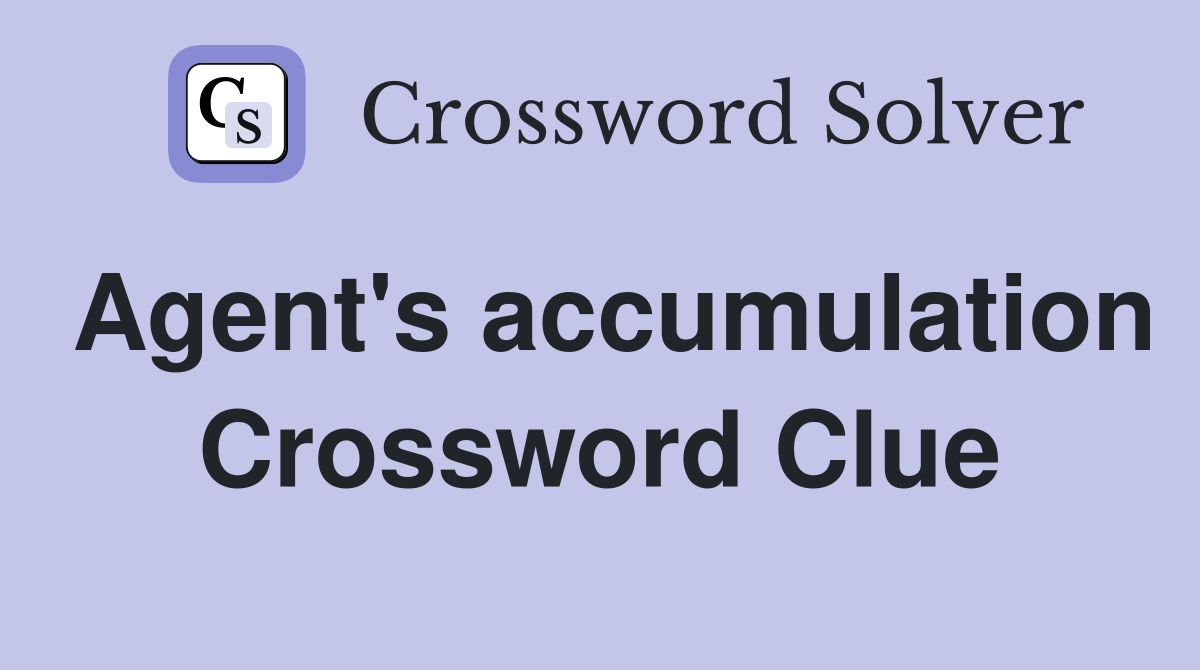 Agent #39 s accumulation Crossword Clue Answers Crossword Solver