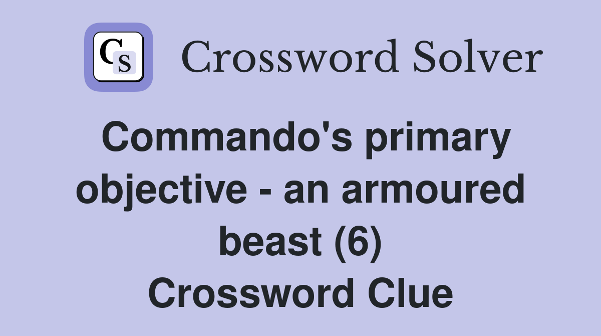 Commando s primary objective an armoured beast (6) Crossword Clue