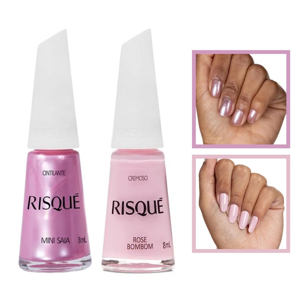 Kit Esmalte Risque Combinação Mini Saia Rose Bombom Shopee Brasil