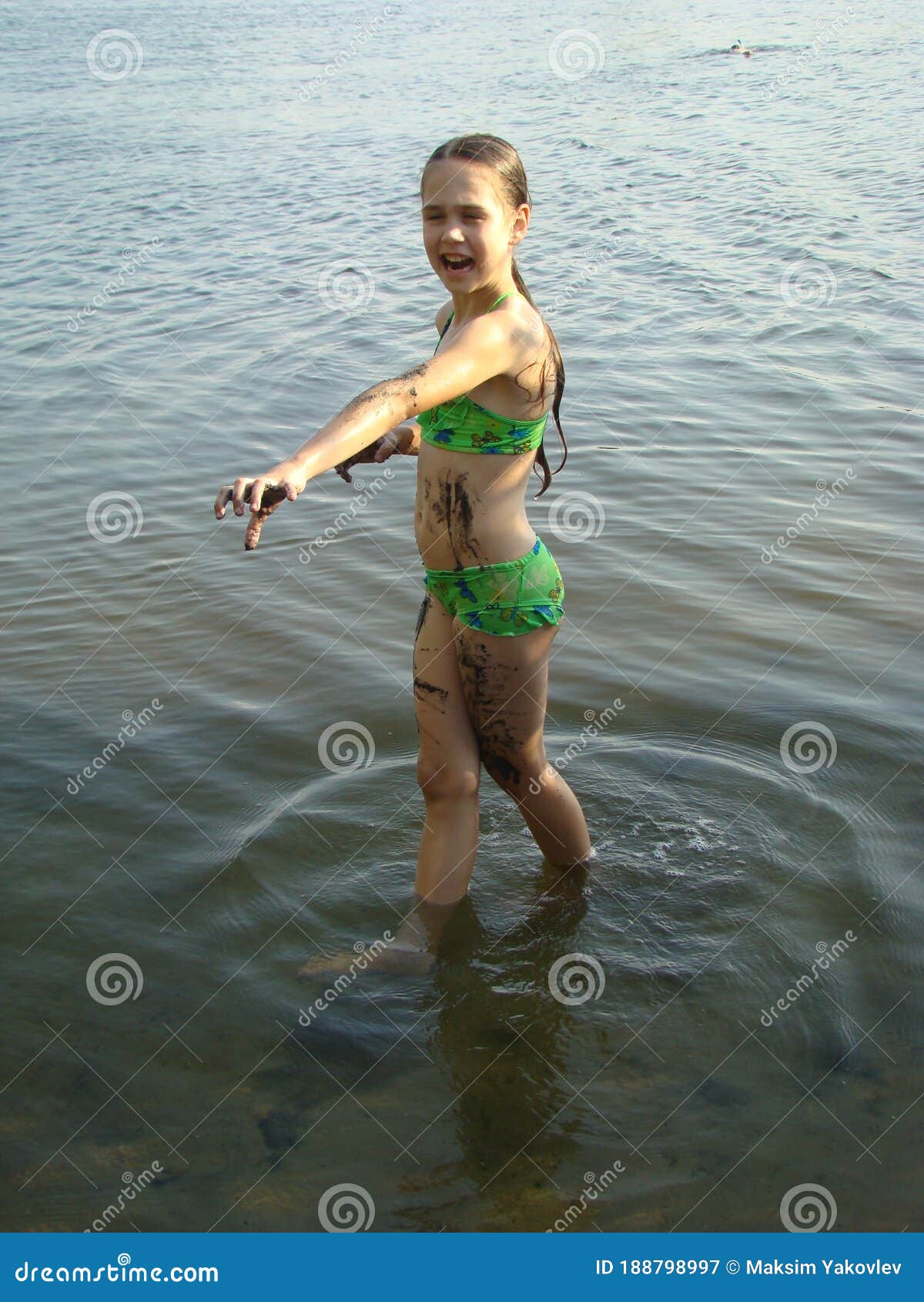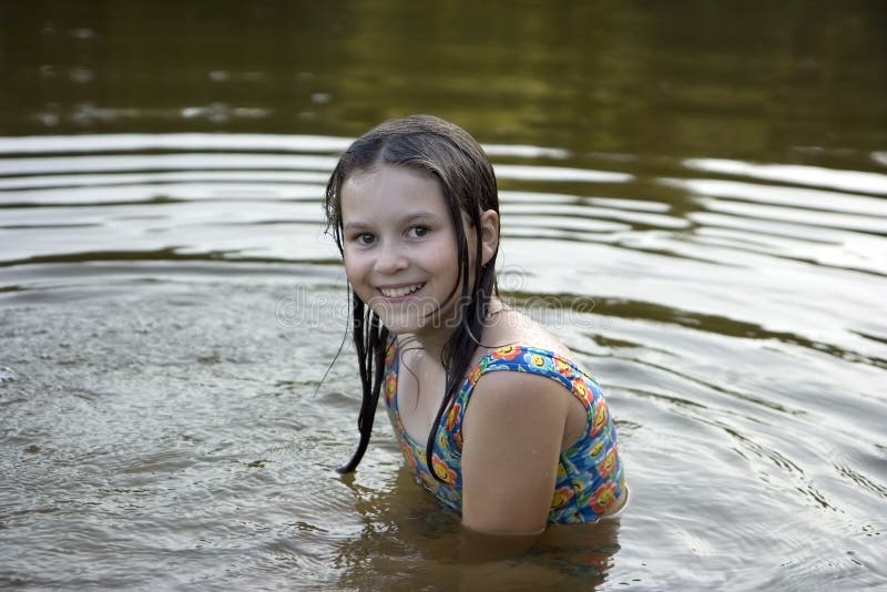 Young Girl in Lake or River Stock Photo Image of outside standing