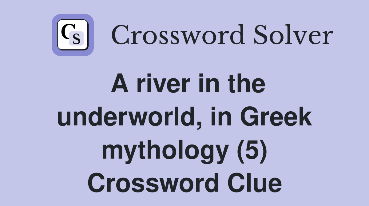 Here are some of the images for River Of Greek Myth Crossword Clue that we found in our website database.