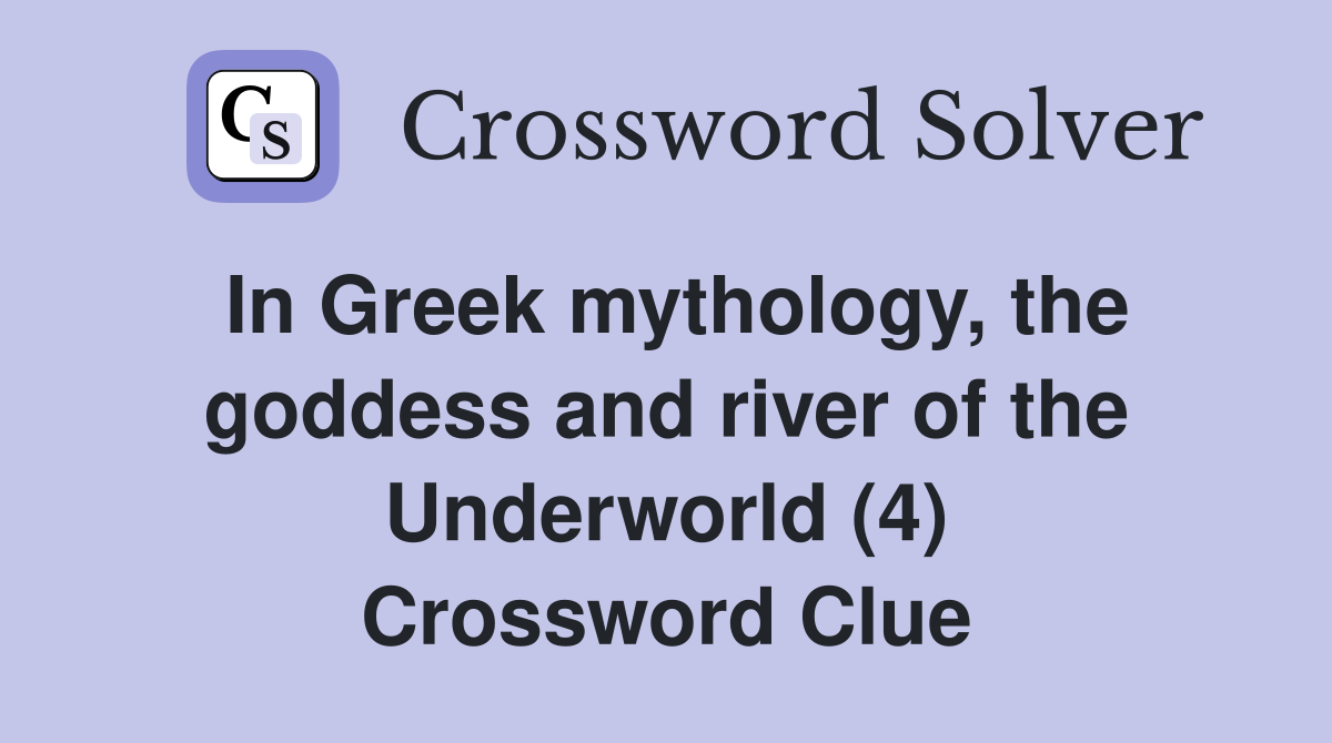 Hades river (Greek myth) (4) Crossword Clue Answers Crossword Solver