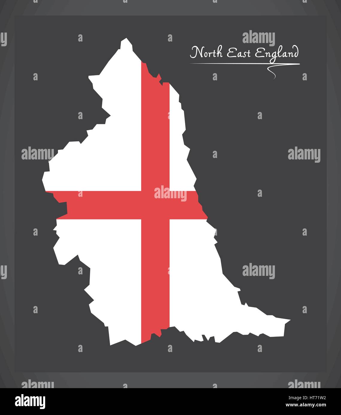 North East England map with flag of England illustration Stock Vector