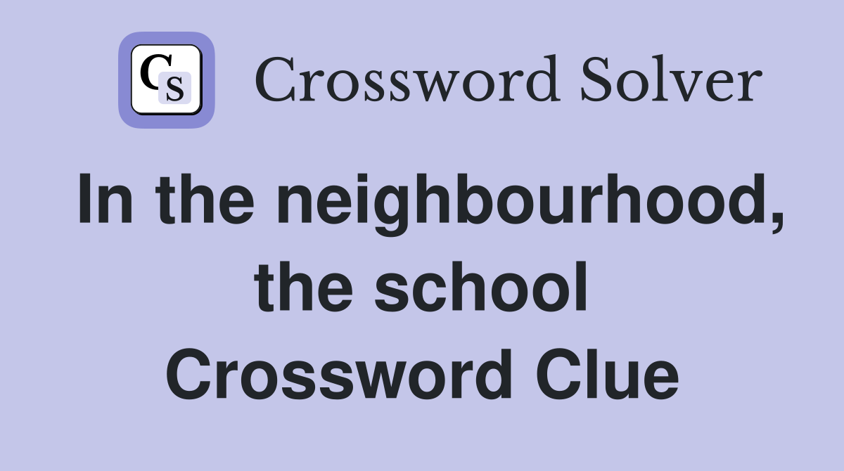 In the neighbourhood the school Crossword Clue Answers Crossword
