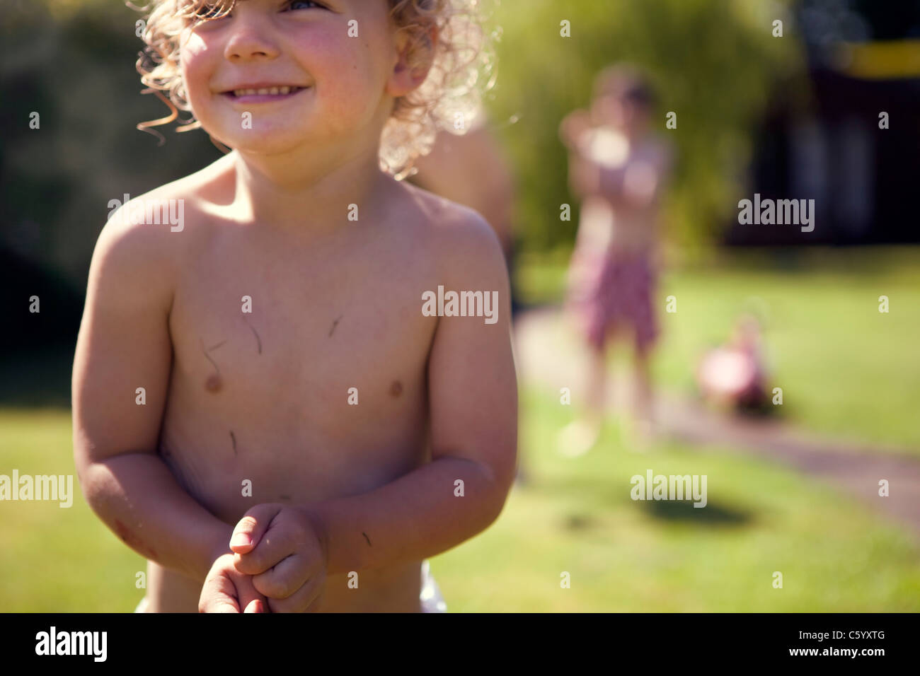 Children play in a garden Stock Photo Alamy