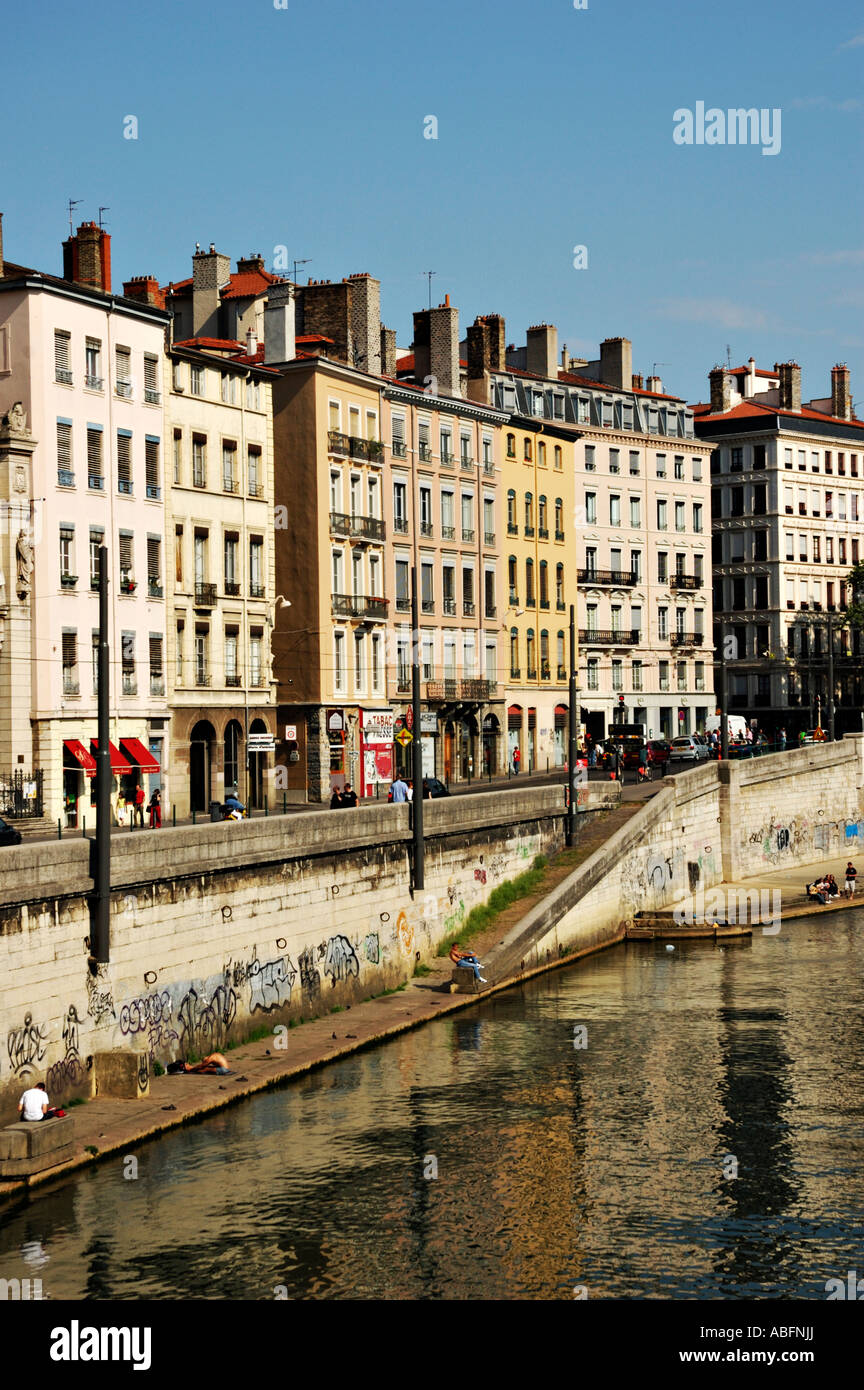Lyon river banks Stock Photo Alamy