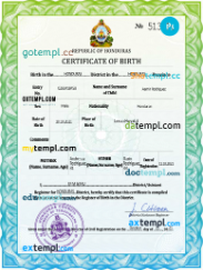 Honduran birth certificate Word and PDF example completely editable