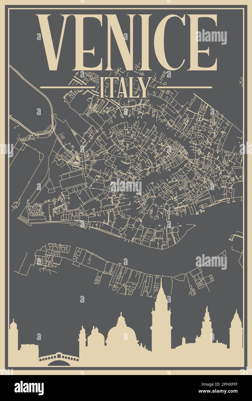 Road network poster of the downtown VENICE ITALY Stock Vector Image