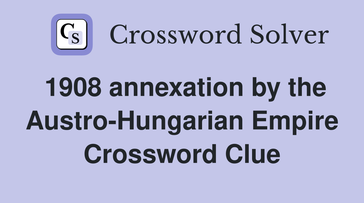 1908 annexation by the Austro Hungarian Empire Crossword Clue Answers