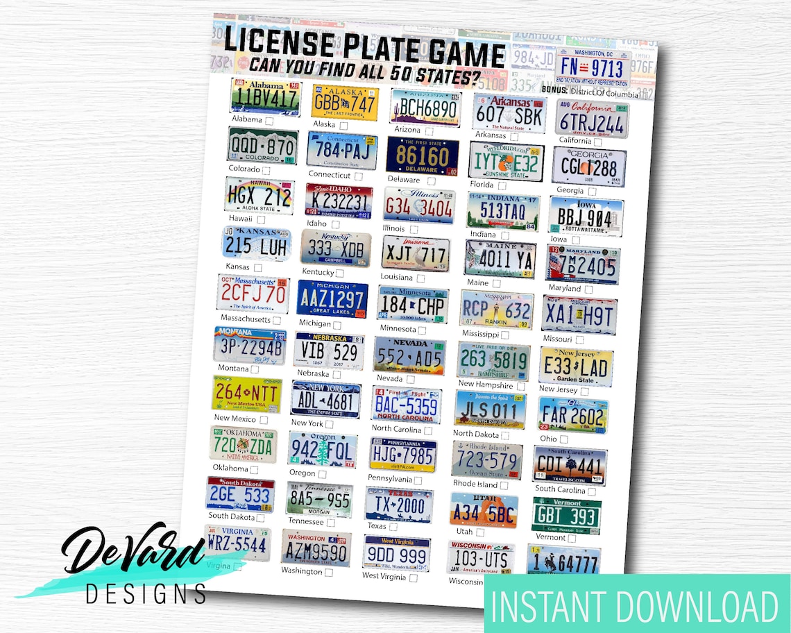 The License Plate Game Downloadable Printable PDF Road Trip Travel