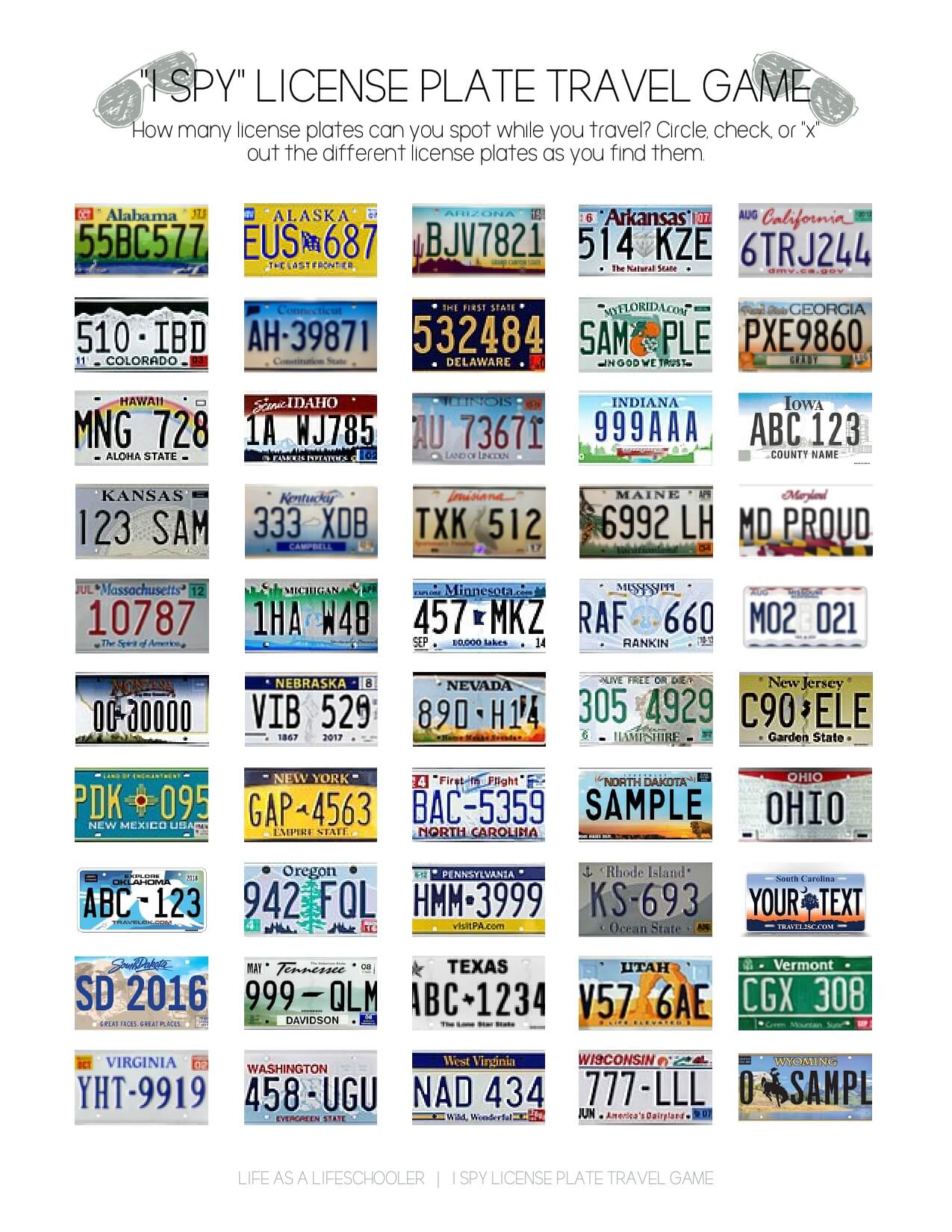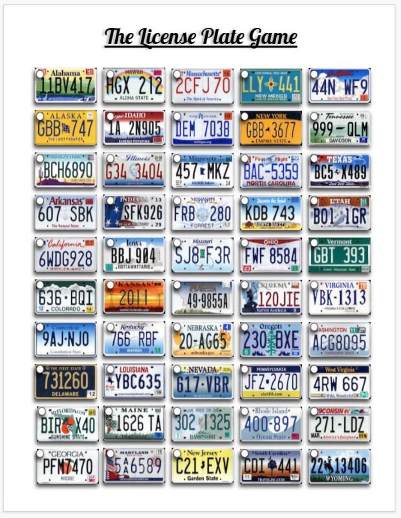 License Plate I Spy Game for Kids Travel Games Road Trip Games