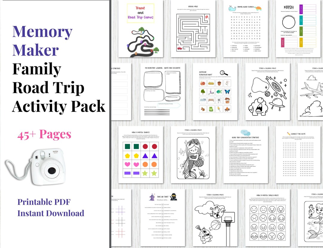 Road Trip Printable Activities for Kids 10 Pages Games Digital