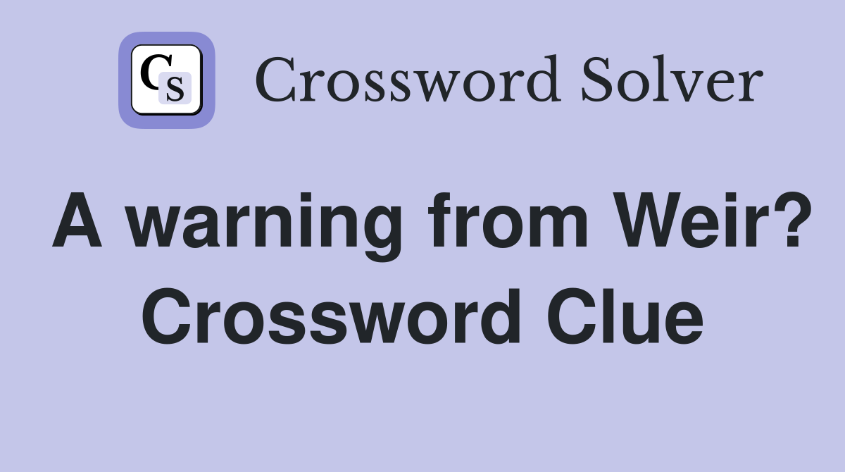 A warning from Weir? Crossword Clue Answers Crossword Solver