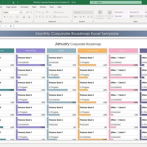 Monthly Corporate Roadmap Excel Template Corporate Planning Etsy